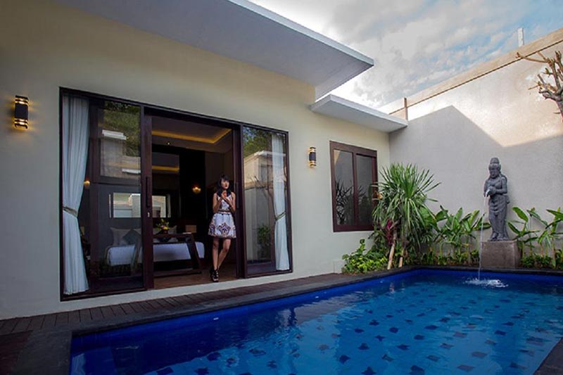 Nearby is a dedicated spa facility, comprising a secluded room that is great for couples, and which also features a Jacuzzi. Treatments range from Balinese inspired traditional treatments using natural and herbal products that are either reinvigorating or rejuvenating. Pleasing to your senses, our signature aromas of frangipani and lavender help you to soothe and refresh. Visually, throughout the property you will notice a fine blend of modern minimalist features corners with traditional Balinese sculptures and walls adorned with abstract and expressionistic paintings.